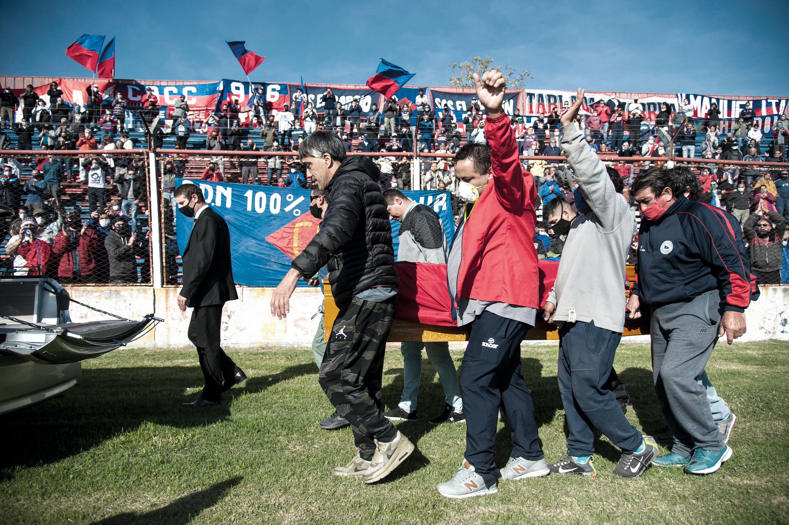 El rodaje en Rosario fue un sube y baja emocional. Empezamos en alto con las respuestas de las personas abordadas al azar en la calle, y con lo que nos contaron en el Bar Lido, lugar de reunión de los seguidores de Central Córdoba, el club de menor nivel que Central o Newell’s en el que Carlovich hizo gran parte de su carrera (también lo disfrutaron a pequeñas dosis varios más, como Independiente de Ribadavia de Mendoza o Colón de Santa Fe). Las entrevistas avanzaban; hubo una inesperada y gozosa con el actor Darío Grandinetti, a quien alguien nos sugirió como devoto del Trinche. Grandinetti, que andaba por su ciudad esos días, tenía fama de envarado, pero nosotros encontramos a un hincha feliz de compartir documental sobre su ídolo “al lado de esas luminarias”, según sus palabras. Pero Carlovich persistía en la gambeta, y se resistía a encontrarse con nosotros. Cuando pasados unos días por fin apareció para una grabación en el estadio Gabino Sosa, cohibido y con cojera, además de alivio sentimos una emoción rara. Quizá la luz del atardecer, quizá los relatos frescos de los que lo habían disfrutado, quizá su amabilidad, pero habríamos jurado que al Trinche lo adornaba en lo alto un aura.