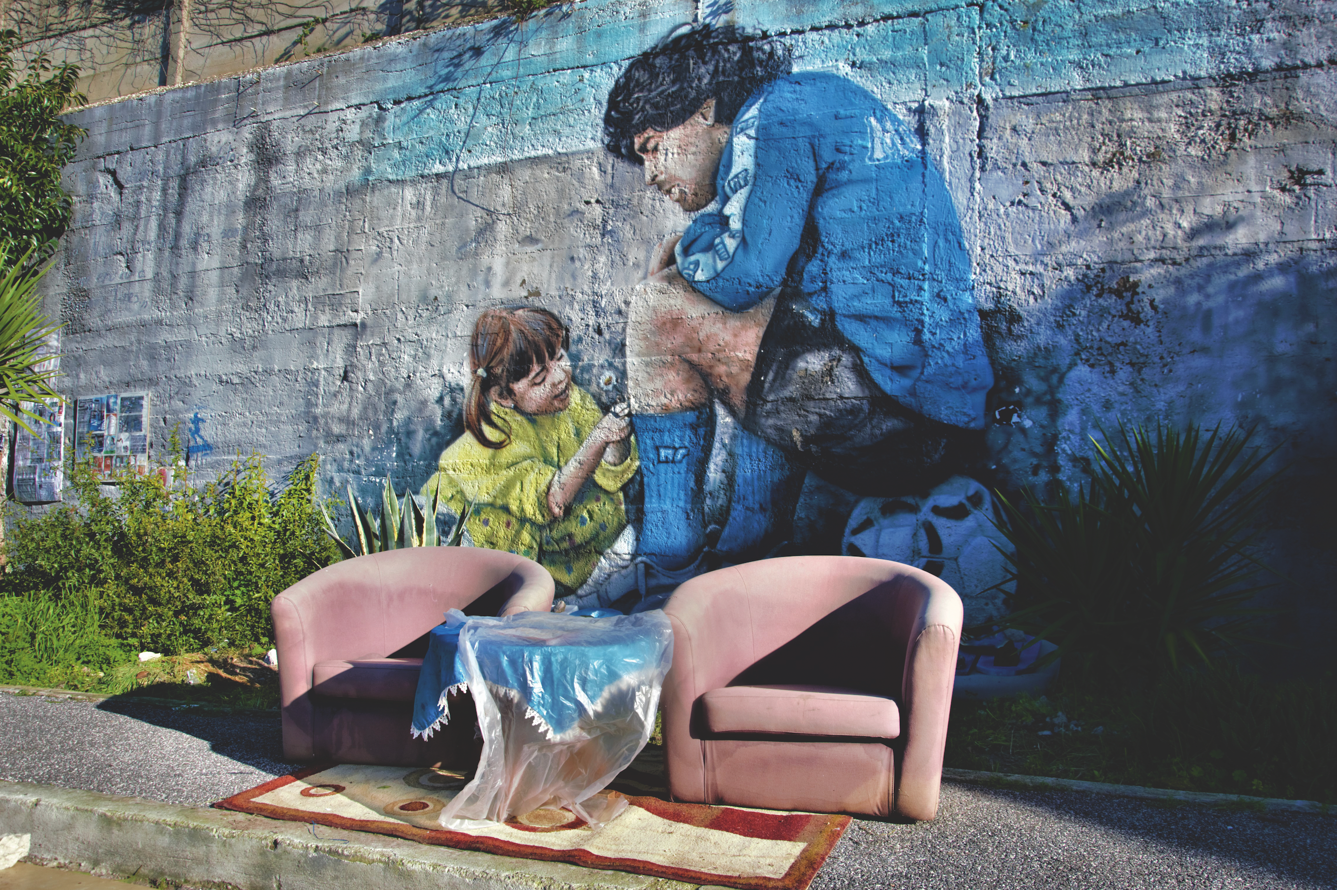 «¿Qué quiero representar? Pues mira, está Maradona, Dalma, la margarita y un balón. No me gusta el fútbol ni el boxeo, pero admiro a Diego y Tyson. Maradona era un padre que quería a su hija y basta. Con esto he querido acallar críticas que lo tildaban de mal padre o cocainómano», espeta un grafitero.