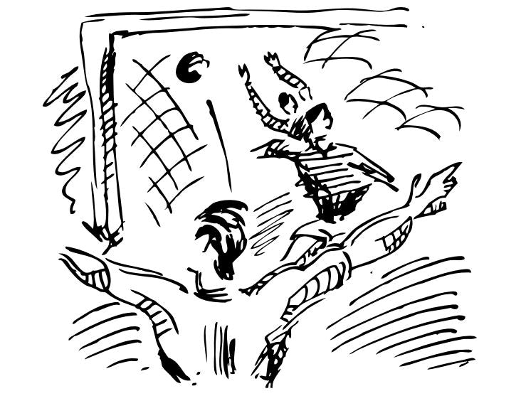 La afición de Delibes por abocetar futbolistas no era nueva. Se le recuerda por sus disputas como director de El Norte con Manuel Fraga en los sesenta y se olvida que en ese periódico ingresó en 1941 como caricaturista (los dibujos que ilustran estas páginas provienen de esa época) con un sueldo de 100 pesetas. En 1936, con el bachiller concluido y la Universidad cerrada, se matriculó en Comercio y en la Escuela de Artes y Oficios donde aprendió a dibujar. “Hice tarjetas navideñas y una exposición de caricaturas. Aquéllas me rentaron algo. Pero ésta me dio bastantes más disgustos que pesetas”, contaría en una entrevista décadas más tarde. Firmaba como MAX (Miguel, su novia Ángeles y X su futuro juntos) y empezó con ilustraciones deportivas que le encargó el sacerdote Martín Hernández, por entonces subdirector. El diario apenas contaba con cuatro páginas a un minúsculo cuerpo seis y pronto comenzó a firmar necrológicas, calle crítica de libros, internacional (“en realidad hinchar telegramas”), cine… y el fútbol que nos ocupa. “Escribí para promocionar mis caricaturas y ganar unas pesetas para capear el duro invierno”, decía. Gran aficionado a los libros de memorias, Delibes sostenía que no escribía las suyas “porque ni me he casado cinco veces ni he matado a nadie”. Incluso llegó a afirmar que “cualquier deshago intimista” le repugnaba pero, por suerte, en sus escritos nos ha dejado muchos trazos de su biografía.